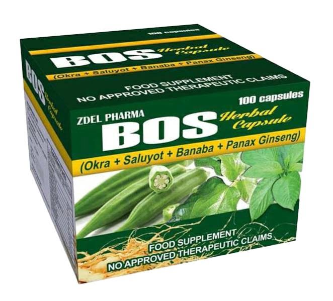 BOS Herbal Capsule contains ingredients like okra, banaba , saluyot and panax ginseng, which help suppress appetite, boost metabolism, and support healthy weight management.